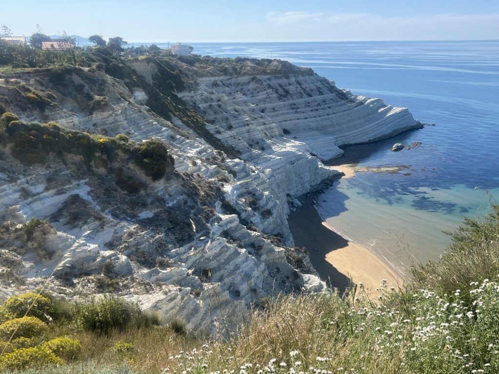 Continuing west took us through some of Sicily’s major agricultural regions – flatter and generally less mountainous than the east, it also made for more relaxed driving. Our route followed the coast ( mostly ) passing Marsala and Trapani with the exceptionally pretty little coastal town of San Vito Lo Capo being our next port of call. Like so much of the Sicily we have seen so far, the coastal waters are a shimmering turquoise and exceptionally clear. This place is a hotspot in summer and was already quite busy when we arrived in early April. It’s got some of the whitest sand beaches on the island and is set against a sheer mountain backdrop – postcard stuff ! While the water was still a little cool at first ( despite the sunny weather ), here the water was just too tempting to stay away from. Always a bonus when the camping is good and the wild camping just south of the town was probably our favourite so far in Sicily – we spent a couple of very enjoyable days there just relaxing. I’ll let the pictures below tell the story.